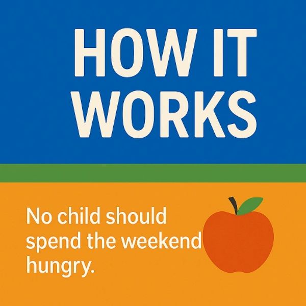 We partner directly with local schools to identify children who are experiencing food insecurity at home. School staff discreetly refer students who may benefit from additional food support over the weekend.